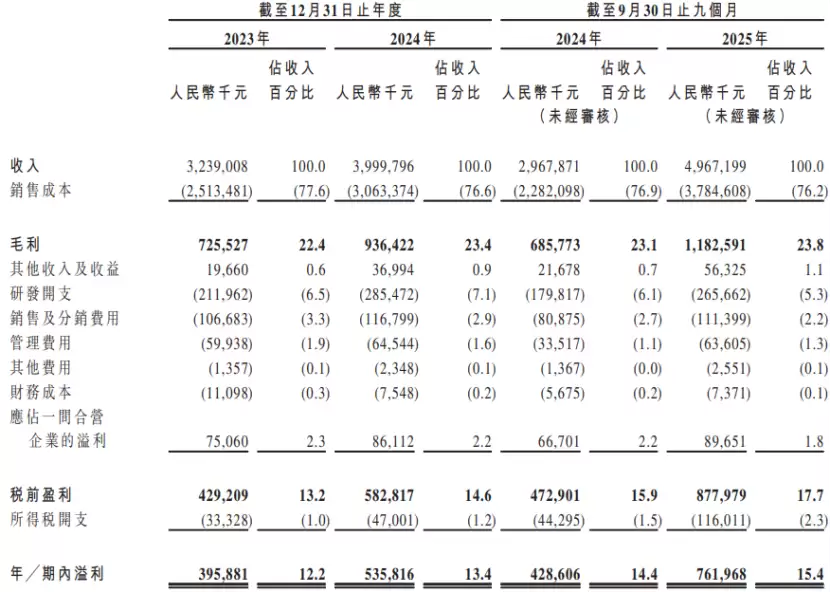 得益于发电用发动机、发动机组件等产品收入的增长,玉柴船电在2024年实现了营收增长。具体来看,2024年、2025年1-9月,公司营收分别约为32.39亿元、40亿元及49.67亿元,毛利率分别约为22.4%、23.4%与23.8%,对应净利润分别约为3.96亿元、5.36亿元和7.62亿元。