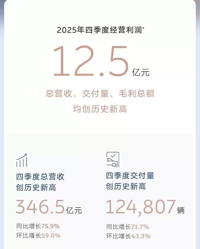 3月10日晚,蔚来正式官宣:公司以12.5亿元的单季度盈利,正式走出长达八年的亏损周期,成功实现盈利拐点,而且全年营收和总交付量均创下历史新高。