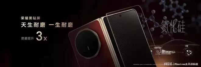 在屏幕体验上,荣耀Magic V6搭载全新“至臻黑钻屏”,通过5600层氮化硅高精镀膜工艺,实现1.5%的超低反射率,在强光环境下依然保持清晰通透显示效果。外屏采用新一代金刚巨犀玻璃,具备10倍耐摔、15倍耐刮能力,并支持“零贴膜”使用;内屏则升级为超韧UTG玻璃,在静置状态下折痕深度仅约52μm,获得SGS无感知折痕认证。