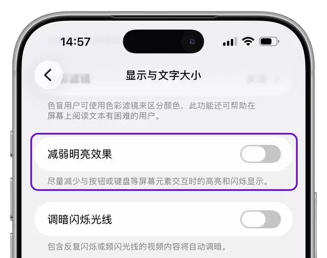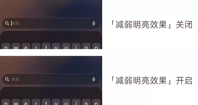 新增「减弱明亮效果」开关