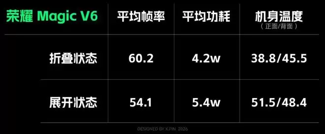 按同样的测试方法,展开状态下,荣耀 Magic V6 的游戏分辨率为 1810P。此时由于渲染压力的增加,平均帧率有一定下降,但也基本符合小屏到大屏的“性能损耗”规律。