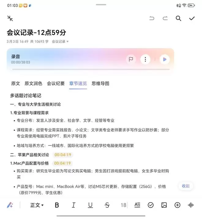 会议结束,它还能把纪要直接生成出来,并自动匹配分析模板,基本把“会后整理”这件事打包解决了。