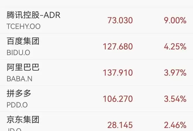 3月10日晚,美股中概科技龙头集体大涨,截至22:50左右,腾讯控股ADR涨9%,百度、阿里涨约4%。