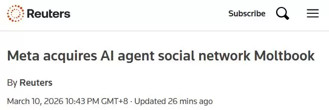 就在Information爆料的同时,3月10日,Meta官宣收购Moltbook。