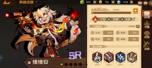 维维安在游戏前期就是开荒利器,她的输出能力和生存坦度都相当出色。高达3301点的生命值,比不少正统坦克还要厚实,可以直接放在前排承受大量伤害。她的大招能召唤陨石,打出大范围的群体伤害;被动召唤的小陨石还有概率震晕敌人,在清理杂兵时效率非常高。作为一位比较易获得的英雄,通常只需要10次连抽就有很大机会入手。她不仅能作为过渡角色使用,其技能附带的燃烧效果还能与其他角色联动,打出更高的组合伤害。