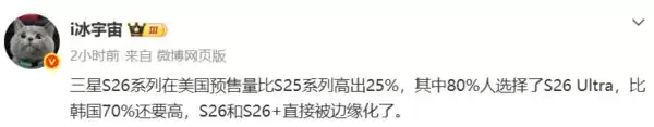 三星S26 Ultra美国预购火爆,份额超80%力压本土