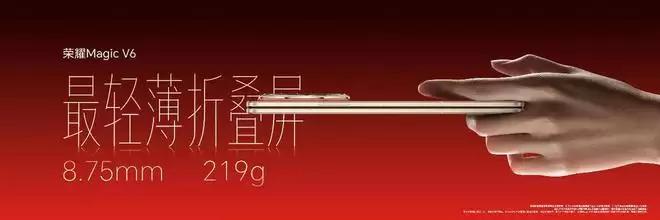 在上一代的基础之上荣耀Magic V6再一次书写了属于自己的轻薄神话,它的厚度仅为8.75mm,重量仅为219克,展开状态下只有4mm。可以讲这个纪录未来需要很长时间才能被打破,且打破者可能也是荣耀。