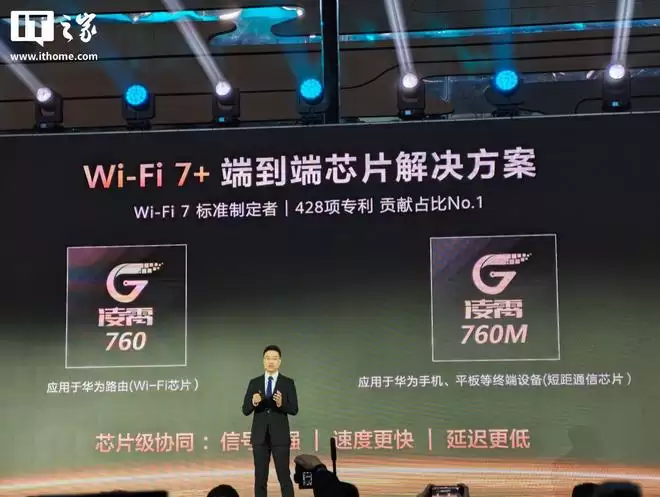 IT之家3月11日消息,在今天的华为鸿蒙智家技术沟通会上,华为正式发布了端到端的Wi-Fi 7+芯片解决方案,该方案以凌霄760系列芯片为核心,融合了动态窄频宽、真双频并发与双频无缝漫游三大关键技术,为用户带来“速度更快、连接更稳、覆盖更广、切换更顺滑”的全场景无线网络体验。