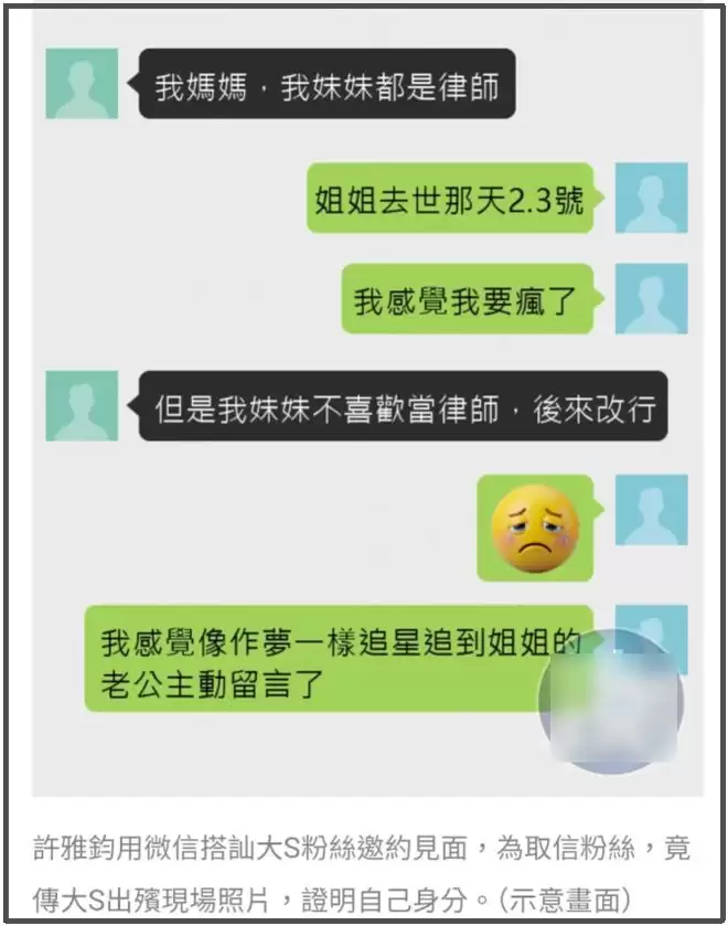 许雅钧回应台媒直接承认私联女粉,称“任何支持大S的粉丝,我都会支持,不分男女”。之所以联系女粉丝,是因为他注意到女方一年来常常发布思念大S的动态,深受感动。