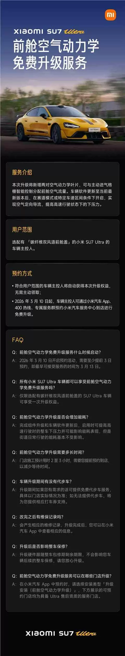 小米SU7 Ultra开孔机盖免费升级,提升高速行驶稳定性