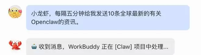 在社区“进修”了一圈之后,我给WorkBuddy claw布置了下一条任务:每隔5分钟抓取一次全球最新的OpenClaw相关资讯。
