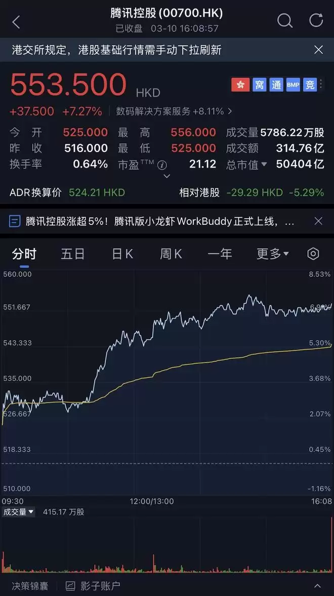 资本市场也给出了即时反馈,今日,腾讯股价大涨超7%。