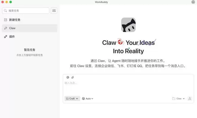 在远程模式下,Agent运行在WorkBuddy云端,通过Webhook接收来自各类IM工具的消息并进行处理,再把执行结果返回到对应平台。这意味着用户只需要在聊天窗口里发出指令,就可以让AI在后台执行任务。