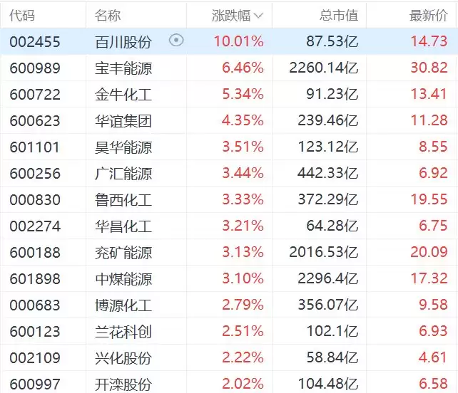 A股异动丨甲醇概念股走强,百川股份涨停,宝丰能源涨超6%