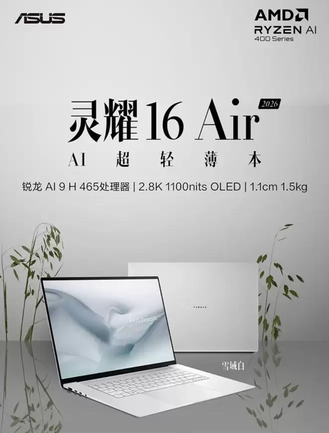 如果说双屏是效率进阶,那华硕灵耀16 Air 2026更像是一台找到平衡点的全能型AI超轻薄本。