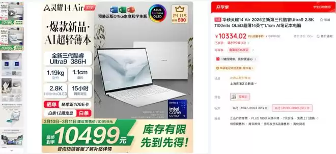 华硕灵耀14 Air 2026 AI超轻薄本现已正式开售。它以轻盈之躯容纳强悍性能,集专业视听与持久续航于一身。目前也在京东商城火热售卖中,现在购机并晒单,即可返100元E卡,同时可享白条分期免息优惠。对于追求轻薄便携、强悍性能与智能体验的商务人士、创意工作者及学生群体而言,这款多方位进阶的AI超轻薄本无疑是一个值得重点考虑的智慧之选,于高效办公中从容应对,在灵感创作时尽情释放。