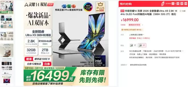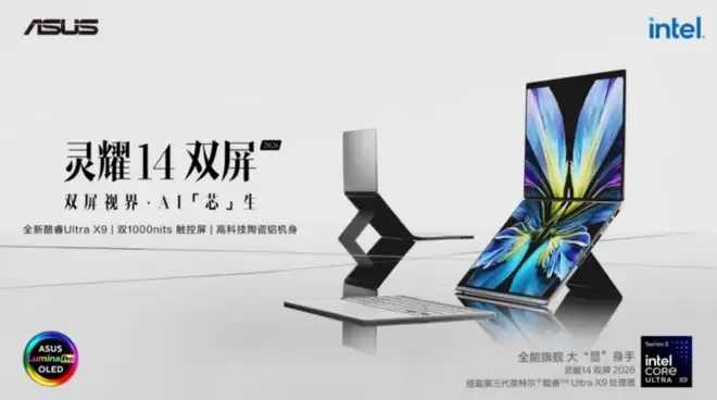 华硕灵耀2026系列:双屏大屏办公,商务从容新体验