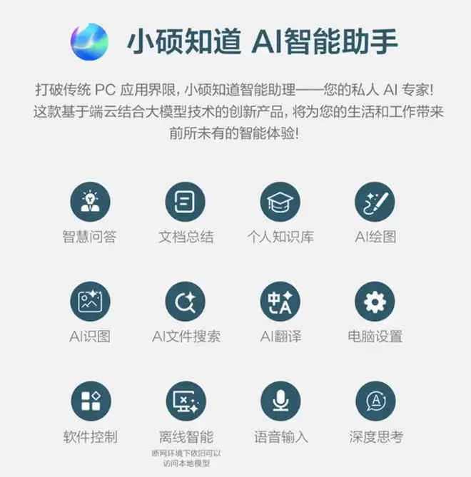 AI体验方面,内置基于端云一体大模型技术的AI智能助手“小硕知道”,支持自然语言交互,并具备AI识图、AI绘画等多项功能,成功高效工作的私人助理。