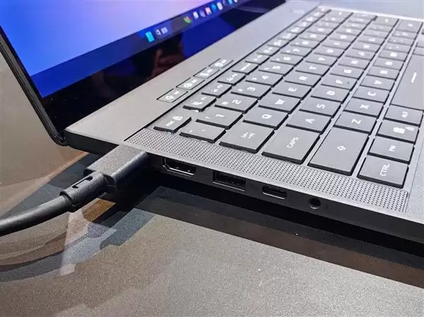 接口也是大满贯,提供一个雷电4/USB4 40Gbps、一个USB-C 10Gbps,都支持DP 2.1集显输出和PD 3.0快充,还有HDMI 2.1、两个USB-A 10Gbps、SD读卡器、一个3.5mm音频孔。