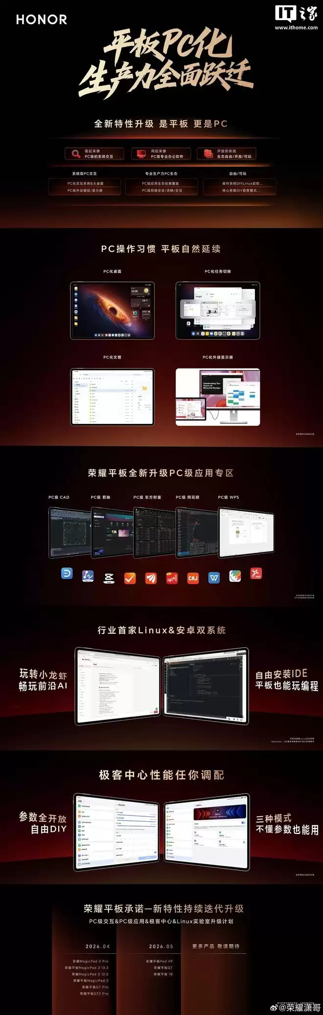 值得一提的是,荣耀终端有限公司全场景产品线@荣耀潇哥昨晚就分享了平板PC化升级计划。