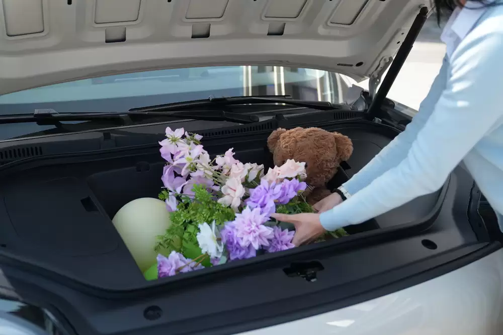 储物空间表现突出,拥有70L智能电动前备厢(支持8种开启方式)、375L-1450L电动后备厢及35L后排座椅下方储物空间,全车共计38处储物设计。