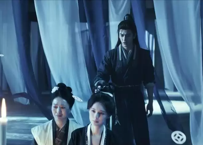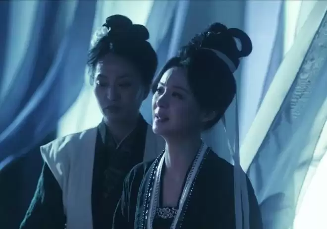 魏绾出场的时间并不长,在谢征的梦里,她一身黑为牺牲的丈夫送行,对着镜子描眉,随后便是自缢而亡的情景。