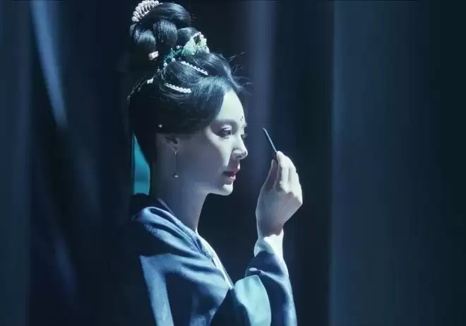 她穿着一套墨绿色系的古装,发饰也很简约,也属于低调内敛那一挂,但温润柔和的气质,却凸显了她的贤良淑德。