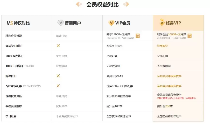 尊享终身畅学全站会员课程和全部会员权益,可以免费学习全站所有标注"VIP免费"及"终身VIP免费"的课程,畅学课程总价值超过30000元。