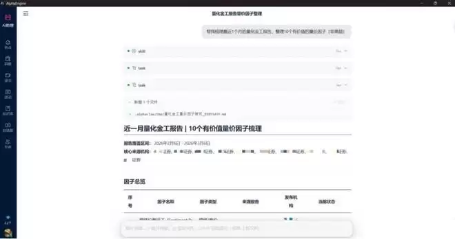 如果说上一代 AI 投研工具是有问必答的 AI 助手,那么 AlphaClaw 则完成了向「自主执行」的进化 —— 它是一位能够独立跑通复杂投研工作流的 AI 分析师。