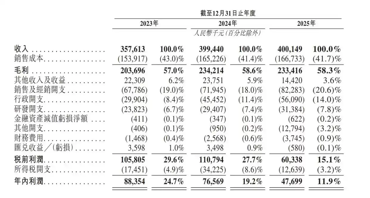 盈利端表现更为疲软,同期年内利润分别为0.88亿元、0.77亿元和0.48亿元,2025年净利润同比大幅下滑37.7%,创下近三年最大跌幅。