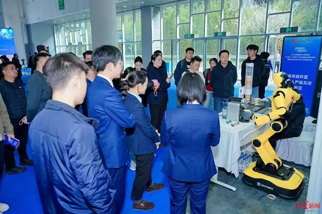 作为本次工博会的重要配套活动,此次推介对接会不仅是成华区产业优势的集中展示,更是区域链接全球资源、驱动项目落地转化的关键行动。在成华经开区设置的“人工智能+机器人”产品互动体验区内,卡诺普、埃斯顿等企业的机器人展品纷纷亮相,不仅吸引了众多与会企业驻足交流,也直观展现了成华产业发展的硬核实力。