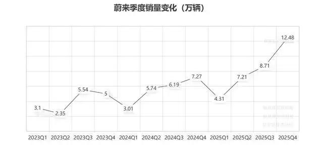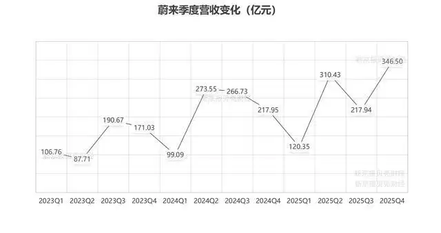 财报显示,2025年四季度蔚来非GAAP经营利润12.5亿元,营收346.5亿元、交付量124807辆,同比分别增长75.9%和71.7%,创单季度新高。