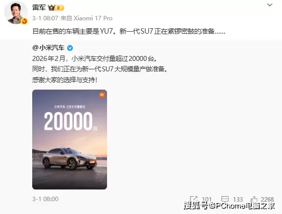 小米集团创始人雷军在转发销量数据时特别强调,这一成绩是在传统销售淡季与新能源汽车市场竞争加剧的双重背景下取得的。他指出,YU7的销量突破不仅验证了小米汽车在主流乘用车市场的竞争力,也为后续产品布局奠定了基础。据悉,小米汽车即将推出新一代SU7车型,该车型将进一步丰富产品矩阵,覆盖更多细分市场需求。