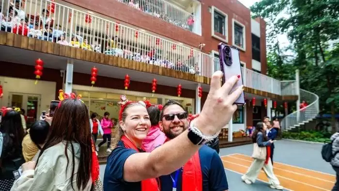 非遗巡游依然是广府庙会最引人注目的亮点。今年,梅花村街杨箕村非遗巡游如期上演,八音齐鸣、龙狮献瑞、财神送福、太极神韵等节目轮番登场,场面热闹非凡。值得一提的是,“广州过年·花城看花——2026年国际旅游知名人士花城幸福之旅”一行约70名外国友人将广州首站选在杨箕,加入非遗巡游队伍,形成特色方阵,生动展现了广府文化跨国交流的融洽景象。