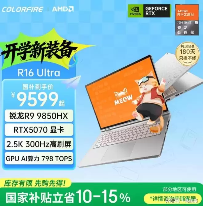 七彩虹橘宝R16 Ultra机身造型很别致,机身由ACD三面全金属打造,A面相当有创意地采用了橘宝猫猫拼图设计和CNC钻石精雕工艺,尾部还有炫彩灯带,质感高级,造型画风也相当有特色。接口方面配备有2个USB-C(含一个全功能口)、3个USB-A、HDMI2.1、2.5G RJ45网口、SD读卡器等,日常使用数量充足。该机日常价格是11099元,活动期间优惠到手参考价格为9569元,适合想买大内存、超高刷新率屏、新颖外观的用户关注。