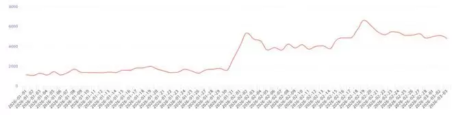 以《无尽冬日》为例,春节档期间出现投放素材量出现两次明显攀升,投放峰值出现在2月19日。