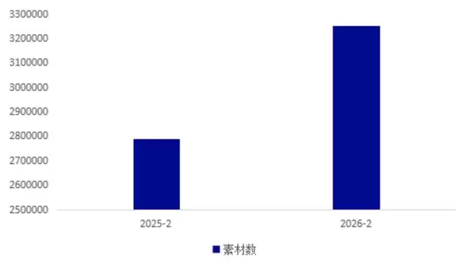 DataEye-ADX投放监测数据显示,抖音小游戏近90天投放素材量平稳增长、整体波动较小;2026年 2 月其投放素材量超324万,同比增长约16.5%,在投游戏数也超1.2万款,较去年同期增长超42%。