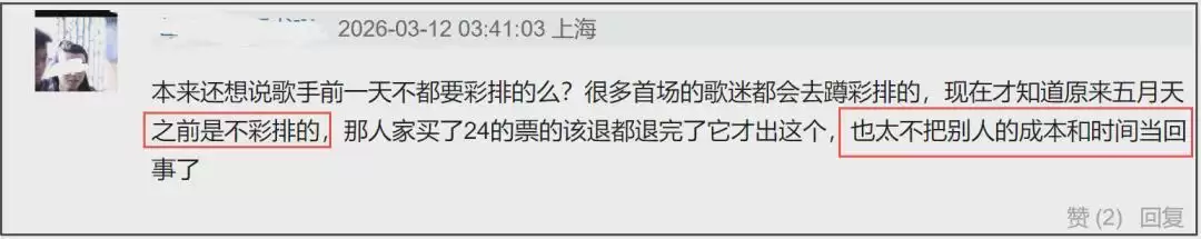 然而,看到这份补偿方案,不少网友直言太过敷衍。歌迷投诉所产生的舆论压力不容小觑,五月天及主办方或许是为了规避潜在的酒店机票赔偿,才临时推出所谓“彩排场”来平息风波。虽然官方将这场彩排描述得颇为神秘,强调是“从未公开过的彩排”,但有知情网友指出,五月天以往的演唱会并无彩排环节,此次仓促推出补偿方案,显然未将歌迷付出的时间与金钱成本当回事。