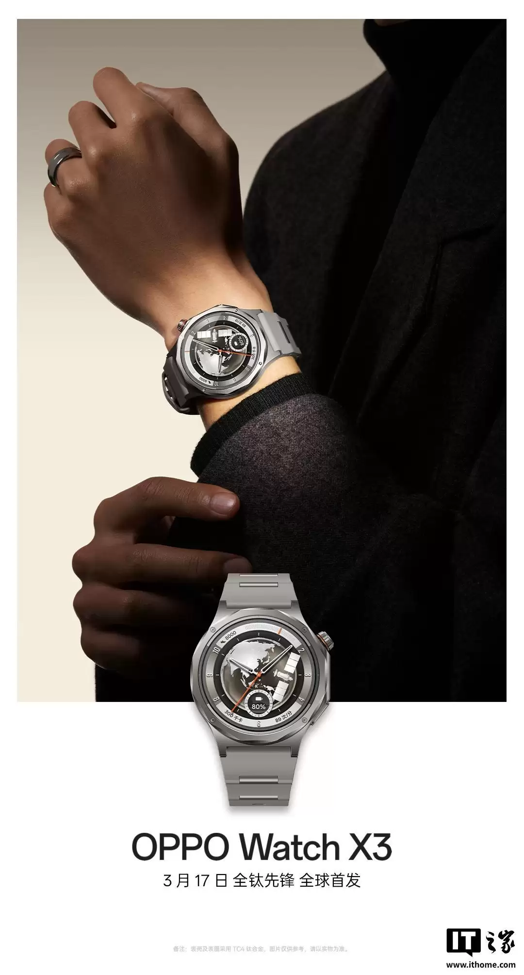 IT之家 3 月 12 日消息,OPPO 最新今日发布了 OPPO Watch X3 的“一图知”,揭晓了新表的核心亮点。据介绍,OPPO Watch X3 全钛打造,拥有航天级钛合金表体,重量减轻