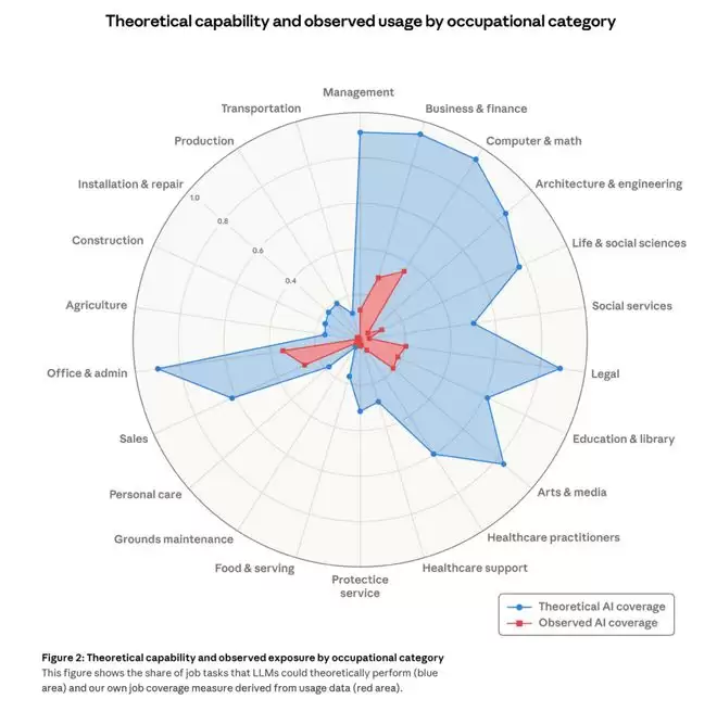 Anthropic发布了一份劳动力市场报告,一位经济学家制作了一张模拟 1826 年人工智能自动化就业情况的图表
