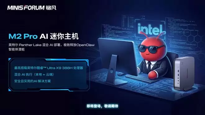 据IT之家3月12日消息,铭凡今日正式宣布,其基于英特尔"Panther Lake"平台的AI迷你主机M2 Pro即将发布。