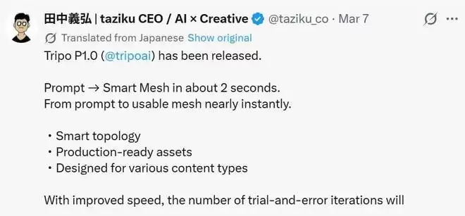 而随着 Tripo P1.0 的发布,这三件事,第一次开始同时成立。