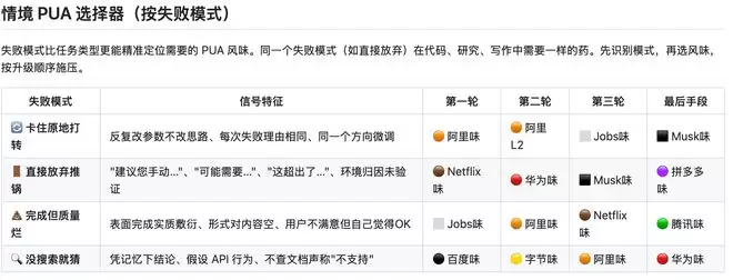 ▲不同大厂的 PUA 风格|https://pua-skill.pages.dev/
