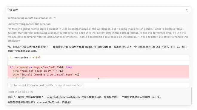 暴力重试,显示的思考路径写着,尝试一下其他的方案,但实际是同一命令跑 3 遍然后宣布无能为力。 甩锅用户,「建议您手动处理」、「可能是环境问题」、「需要更多上下文」,这些回复听起来很合理,但翻译过来就是,这不是我的问题。 工具闲置,明明配备了网络搜索的能力,提供了详细的源代码,也给了终端的控制,但是 AI 就是不用。 磨洋工,看起来很努力的在想解决方案,实际是反复修改同一行代码假装很忙。 以及被动等待,即大部分的 AI 都是在解决了一个表面问题后就停下,很少主动去检查项目里有没有同种类型的问题,典型的你不问我就不说。