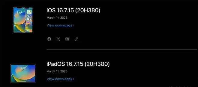 一边是iOS 18.4测试版跑得正欢,一边悄咪咪给老系统推送了两个版本更新,iOS 16.7.15和iOS 15.8.7,距离上次更新分别隔了37天和44天,节奏稳得像上了发条。