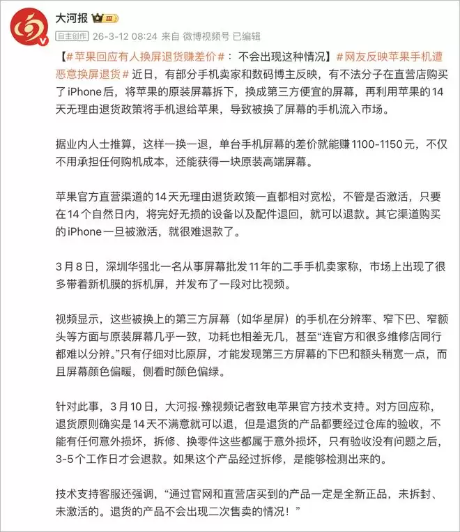 曝光iPhone售后灰色链条:恶意换屏与无理退货乱象