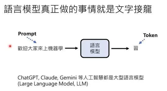 我们可以通过以下两张图片了解语言模型的文字接龙模式和回答问题的方式。