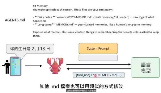 下次它醒来时,会先读memory.md,把里面的内容放进系统提示,于是它又“记得”了自己的生日。