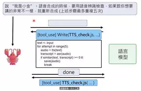 比如我需要做视频配音,但现有的语音合成工具效果不稳定。龙虾就自己写了一个叫tts_check的脚本,流程是: