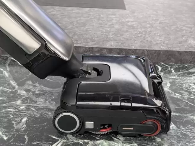 功能上,“喷-洗-挤-吸”四位一体,彻底告别脏水拖地的尴尬。传统洗地机最怕拖完厨房拖客厅,把油污抹得满屋都是,而MOVA这套设计让滚刷实时自清洁,接触地面的永远是相对干净的水,不会越拖越脏、越拖越臭。